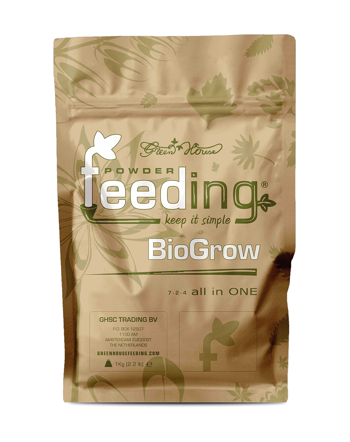 BioGrow de Green House Powder Feeding es un fertilizante completo al 100% para que tus plantas puedan desarrollar un crecimiento vegetativo sin ningún tipo de carencia o hojas amarillas.